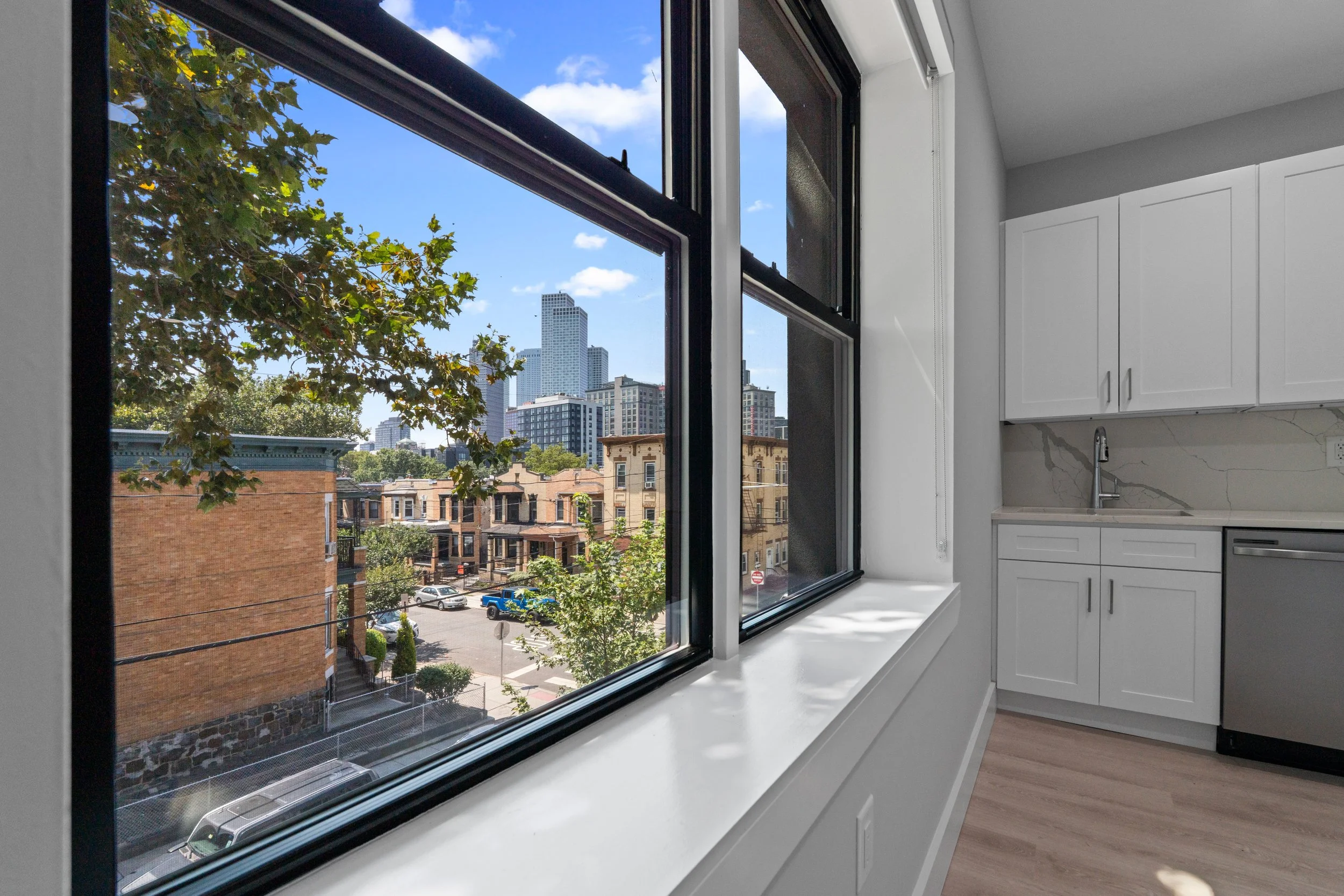 As a corner building with three-side exposure, each residence is filled with abundant natural light and offers sweeping views of Journal Square. Inside, you'll find thoughtfully gut renovated apartments featuring light LVT flooring, split-system central AC and heat, and modern finishes throughout.